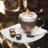 Горіхове капучіно – солодке доповнення до вашого улюбленого напою! Фундукове праліне з лікером Amaretto та “пінка” з ніжного білого шоколаду.